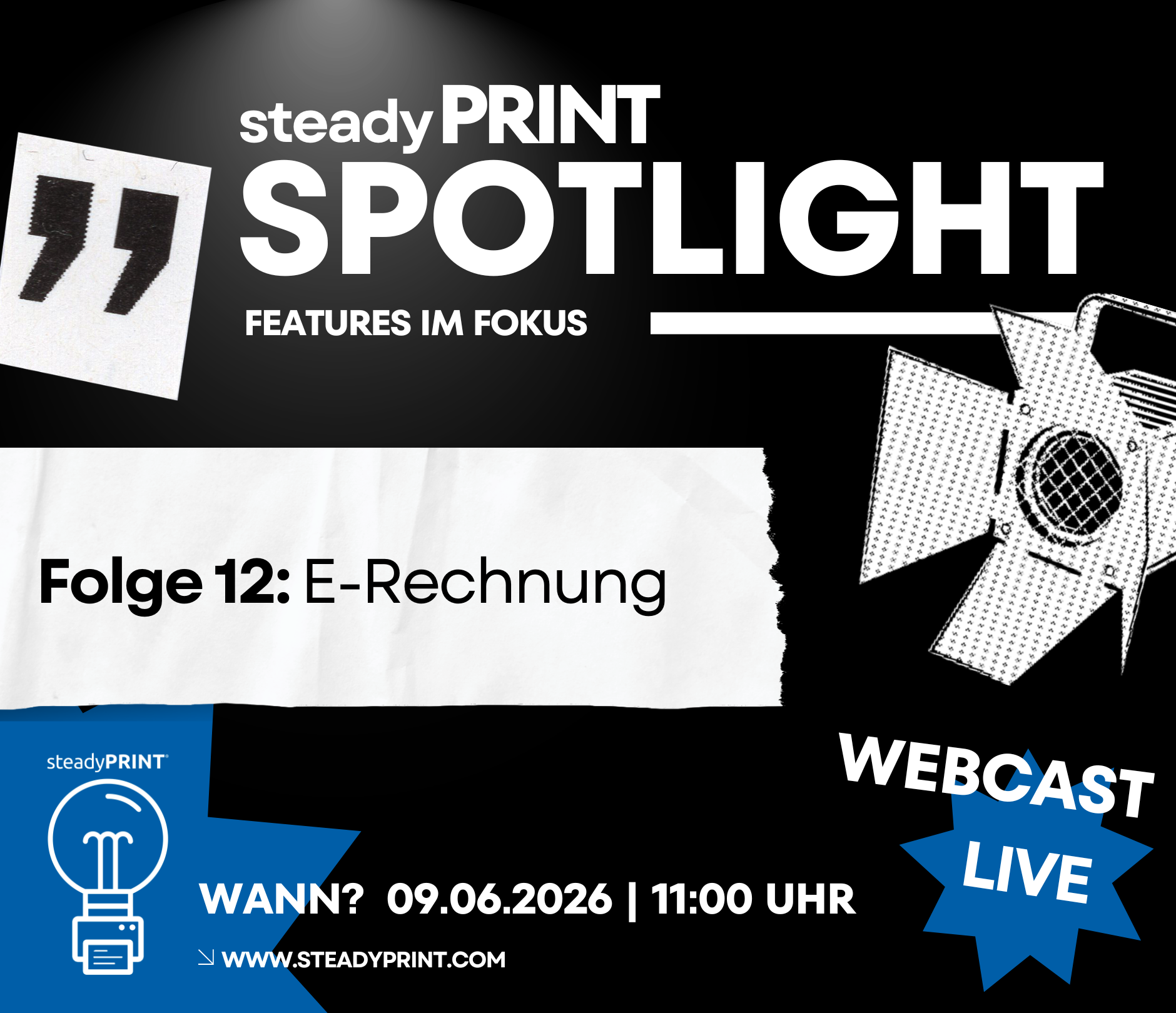Wir freuen uns, Ihnen bereits heute die 12. Folge unserer Webcast-Reihe steadyPRINT SPOTLIGHT – Features im Fokus vorstellen zu dürfen.